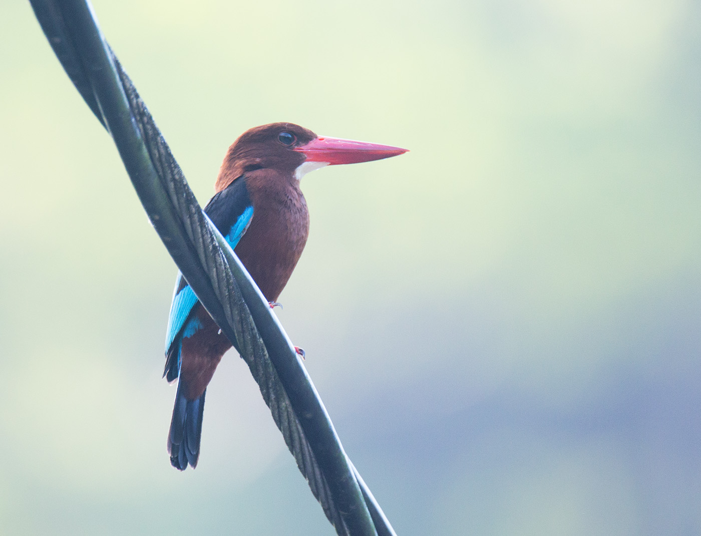 As we continued our drive, we saw two kinds of birds perched on an electric wire - A Grey Wagtail and a Brown-breasted Kingfisher.